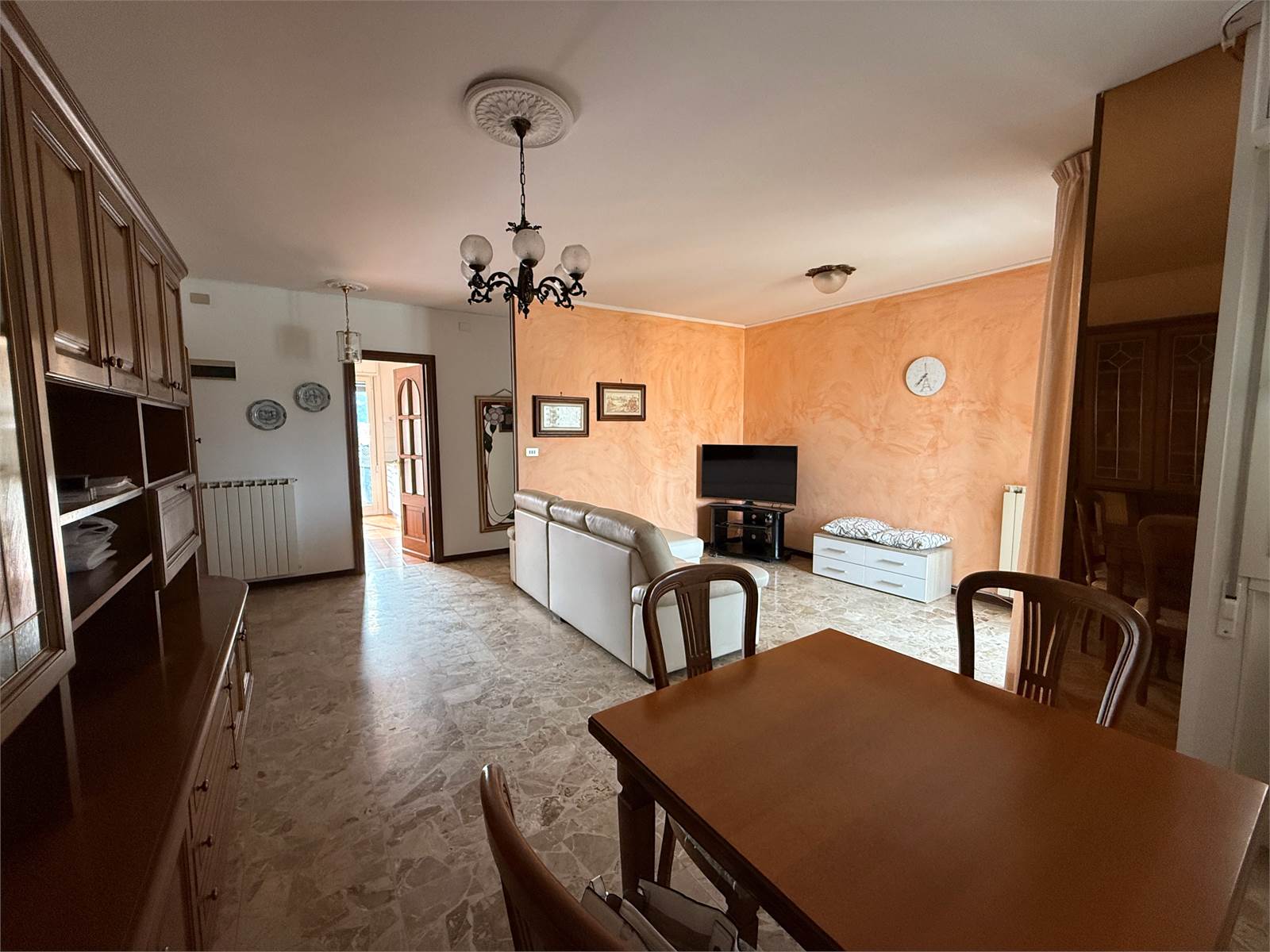 La zona giorno è caratterizzata da un ampio soggiorno che si apre su una terrazzo verandato, perfetto per rilassarsi e godersi momenti in uno spazio all'aperto.