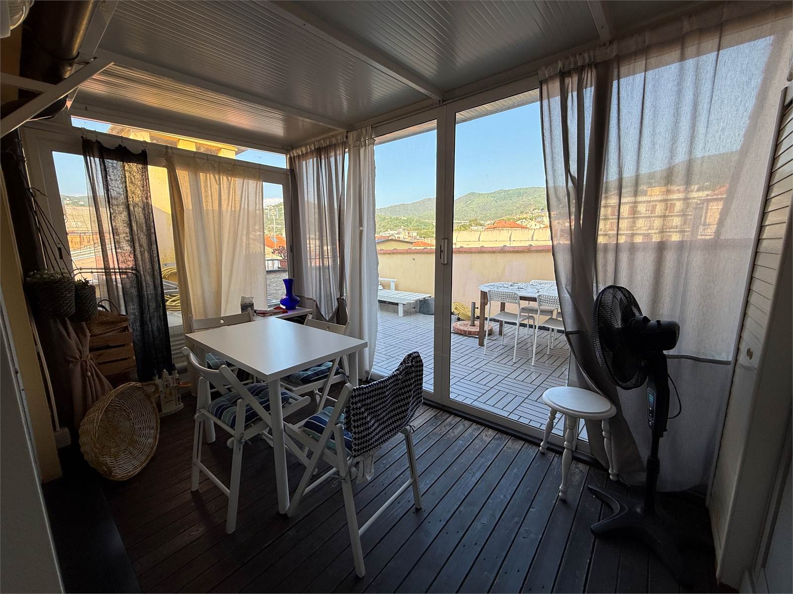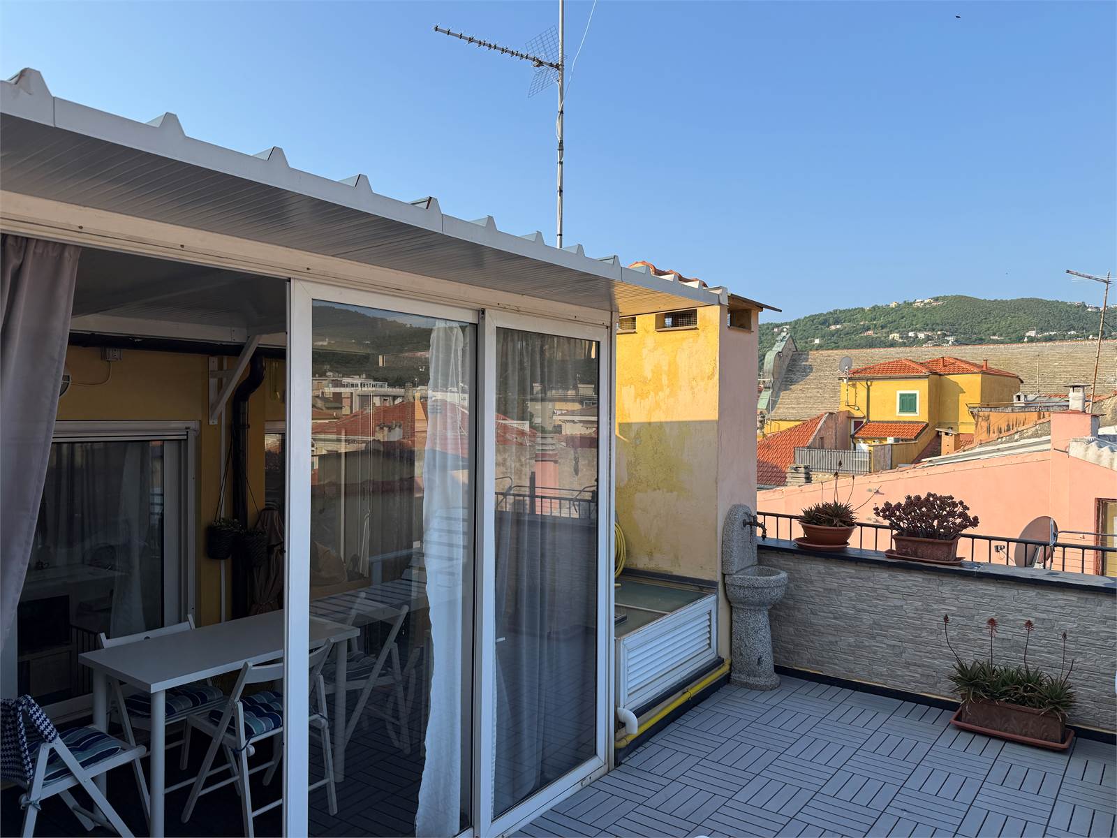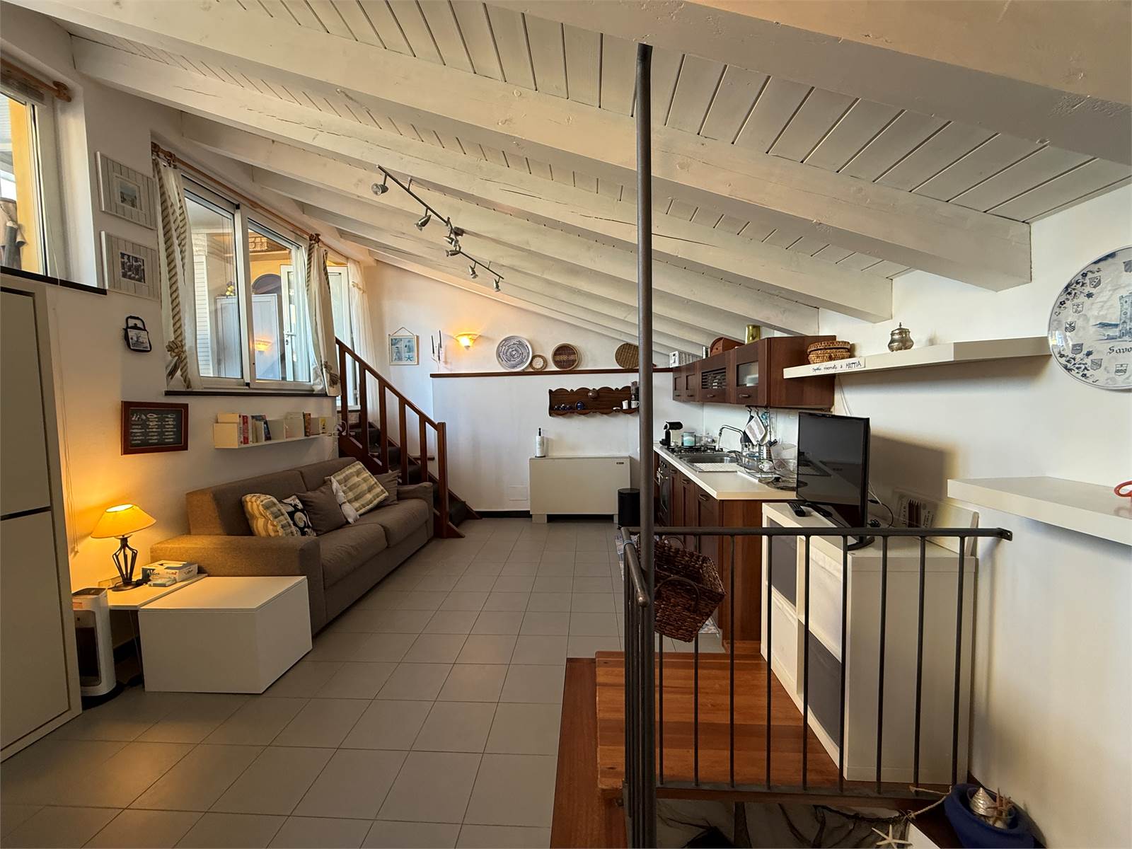 Nostra esclusiva monolocale su due livelli nel cuore del centro storico di Spotorno, un vero gioiello per chi cerca comfort e charme in una delle zone più suggestive. Questo splendido appartamento vanta un ampio terrazzo di ben 18 mq, ideale per trascorrere serate indimenticabili in compagnia, con una vista mozzafiato sui tetti caratteristici del paese.