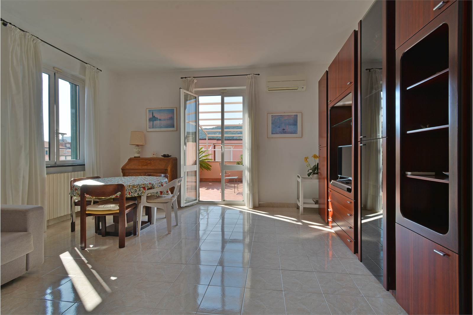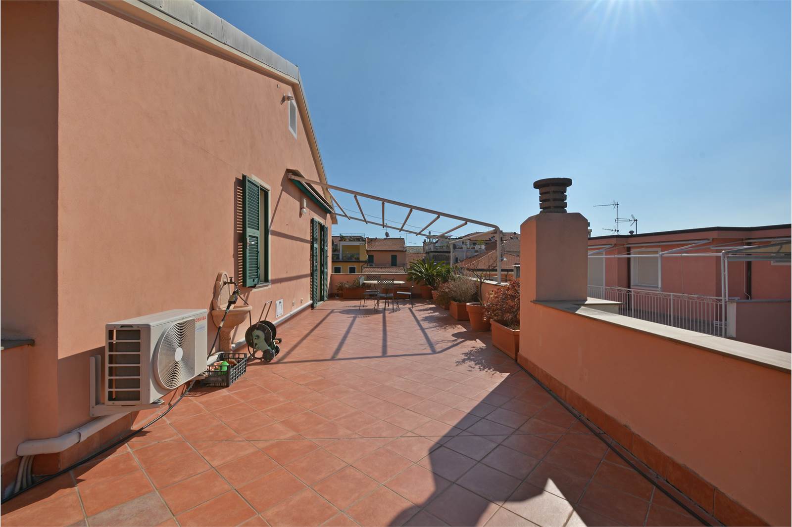 L'attico vanta due camere da letto spaziose e un luminoso salone che si affaccia su un grande terrazzo di 60 mq, ideale per trascorrere momenti di relax all'aperto. La cucina abitabile è funzionale e attrezzata, mentre il bagno è ben rifinito e spazioso. Inoltre, l'area di parcheggio riservata inclusa rappresenta un valore aggiunto in una posizione così strategica.